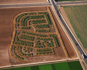 The "estates" of Matthew Moore are also grounded in a specific place. This third-generation farmer renders scale models in sorghum and black-bearded wheat of tract housing rampantly encroaching on his land in the Southwest. What a shame it would be for his photographs to be whisked off to a collector's wall in New York, leaving no trace behind. For while this framed relic might provoke a few sympathetic nods among environmentally conscious New Yorkers, Moore's intervention is needed on his own ground, in his place--and it is needed urgently.